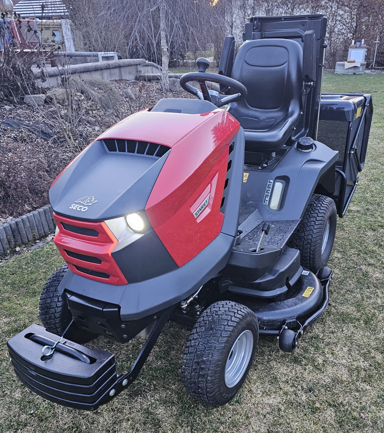 K vašim službám používáme traktory Seco Starjet P5 a P6, které splňují nároky na sečení velkých ploch (až 30000m2) v náročnějším terénu ( traktory jsou osazeny uzávěrkou diferenciálu).